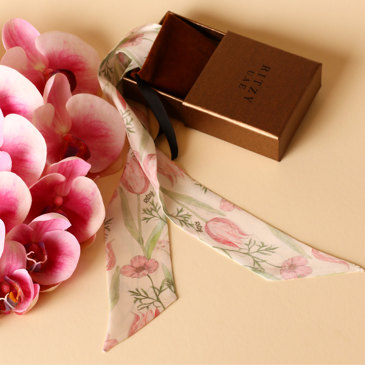 Classy hand draw twilly scarf, designed by RITZY